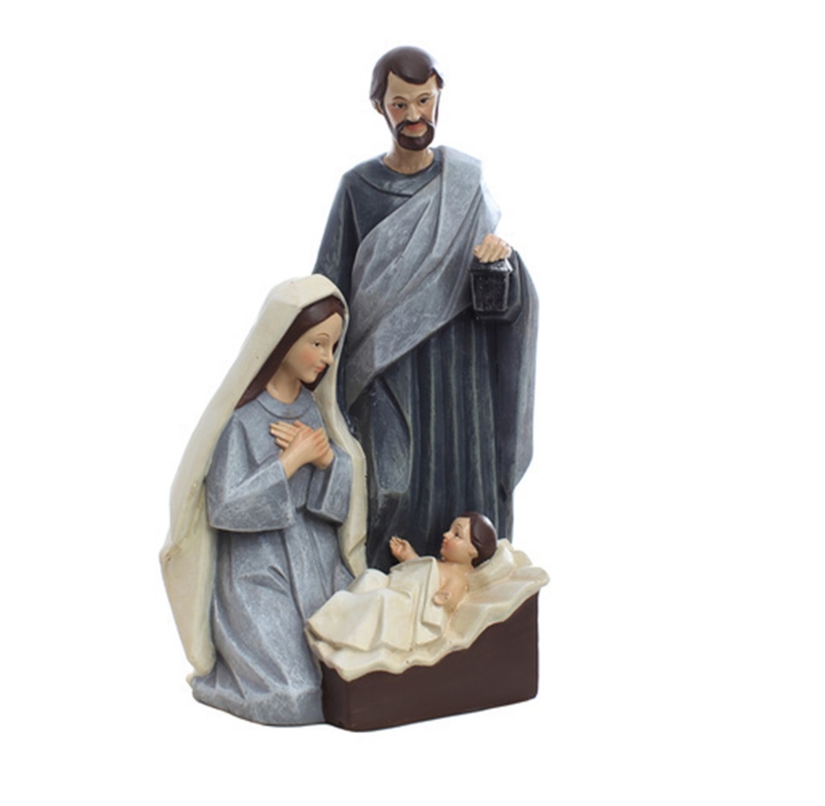 Sagrada Família 21 cm. Feita em resina, importada e com alta durabilidade. Mais resistente e superior ao gesso, garantindo beleza e longa duração para sua decoração ou devoção.