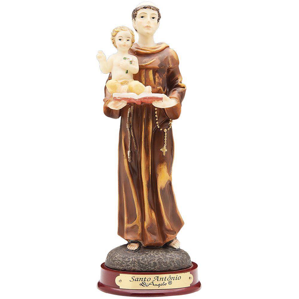 Expresse sua devoção com esta delicada imagem de Santo Antônio com o Menino Jesus, da renomada Antique Collection da Di Angelo, com 20 cm de altura. Confeccionada em resina de alta qualidade, a escultura traz o santo franciscano com o Menino Jesus sobre um livro, simbolizando sua fé, sabedoria e missão evangelizadora. O acabamento imita madeira entalhada, com pintura manual que valoriza cada detalhe da túnica e da expressão serena de Santo Antônio. Ideal para oratórios, presentes devocionais, celebrações religiosas ou para quem busca a intercessão do padroeiro dos casamentos e das causas impossíveis.