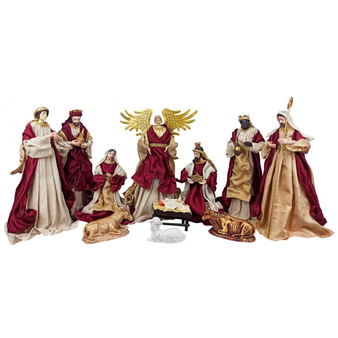 Presépio 11 Peças de Tecido 30 CM - Vinho e Dourado