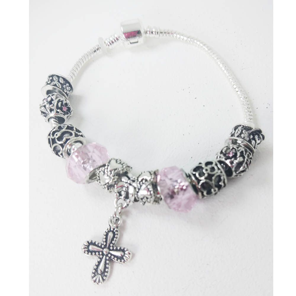 Pulseira Cristal com Metal 12mm Rosa