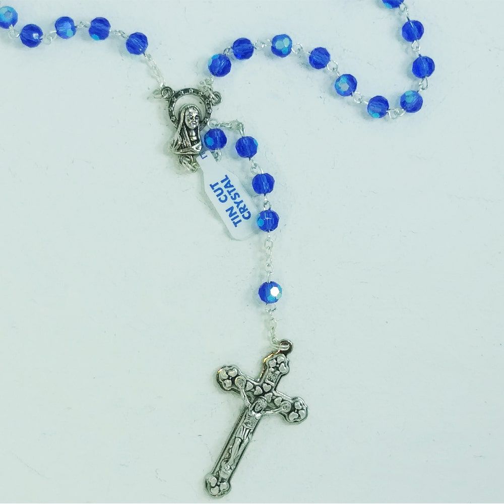 Terço Cristal Azul Madona 10mm
