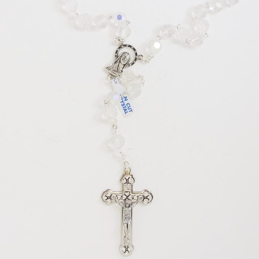 Terço Cristal Branco Madona 10mm