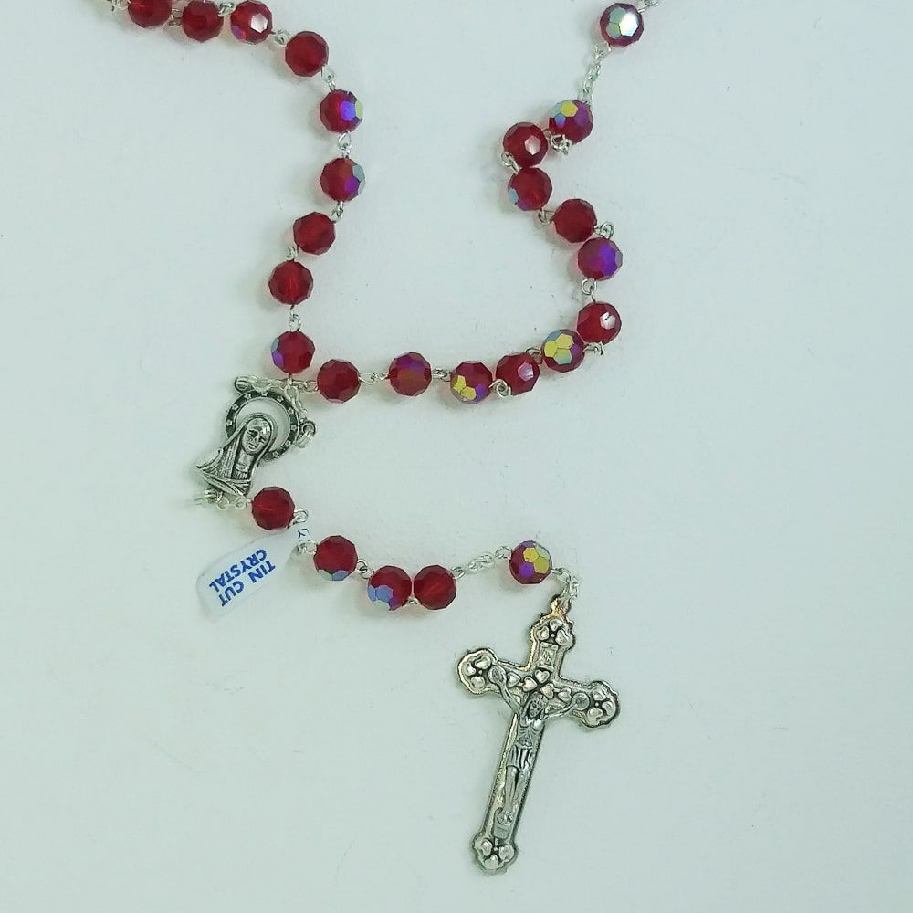 Terço Cristal Vermelho Madona 10mm